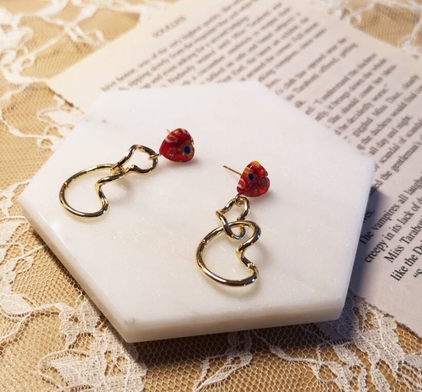 ・揺れる2連のハートデザインで、さまざまなスタイルに好相性。