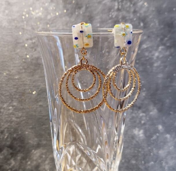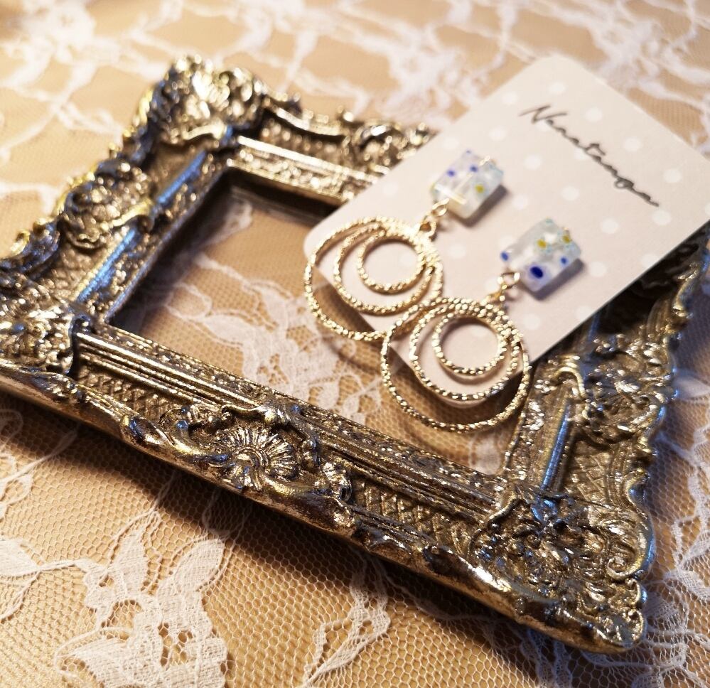 瑠璃ビーズのピアス 白×フープ