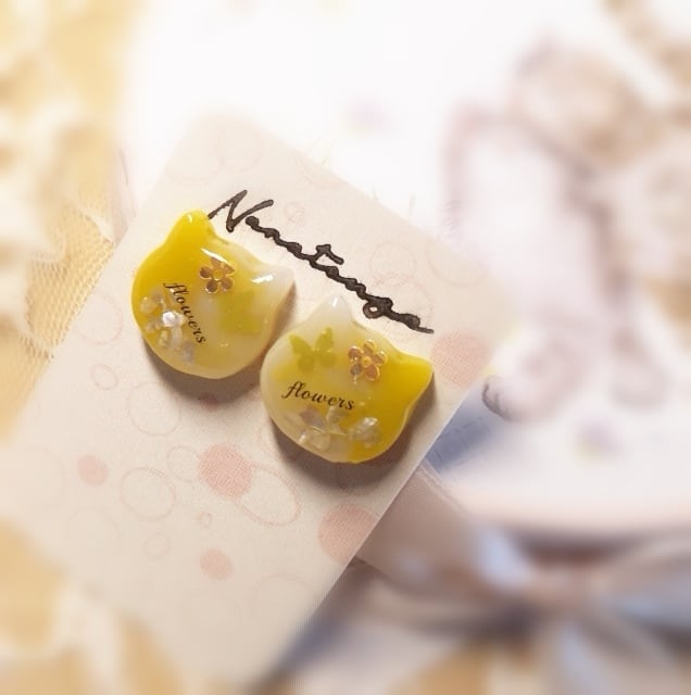 にゃんこフェイスのピアス くすみイエロー