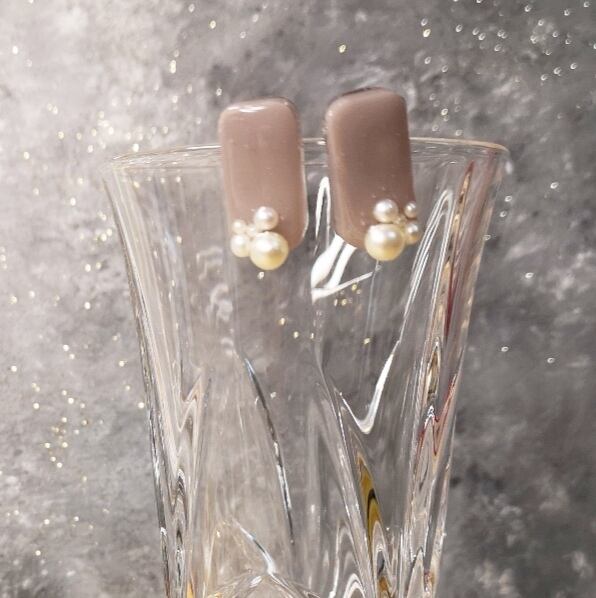 ・くすみパープルとパールの絶妙な組み合わせが、シンプルでありながら存在感を引き立てます。