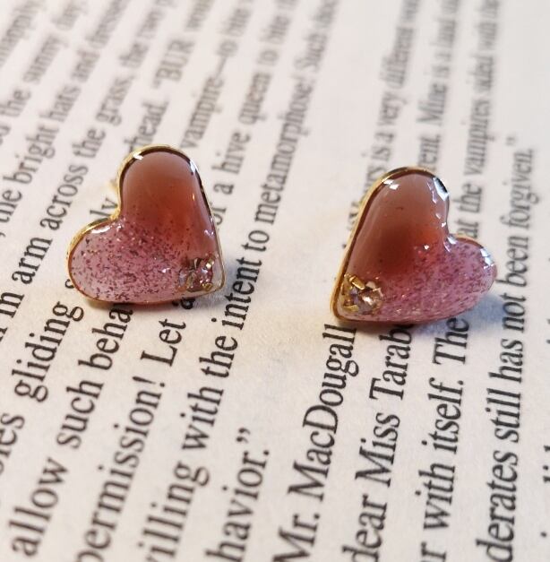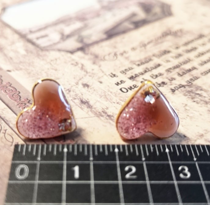 小さなハートのひとつぶピアス ピンクとブラウンのバイカラー