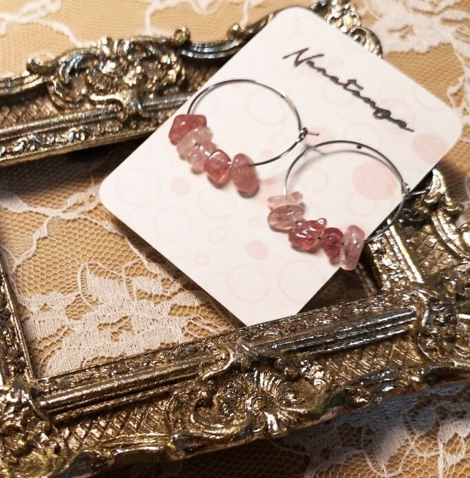 ぜひ、この美しい天然石フープピアス ストロベリークォーツで、あなたの耳元を華やかに彩り、特別な瞬間を演出してください。お客様のご来店を心よりお待ちしております。