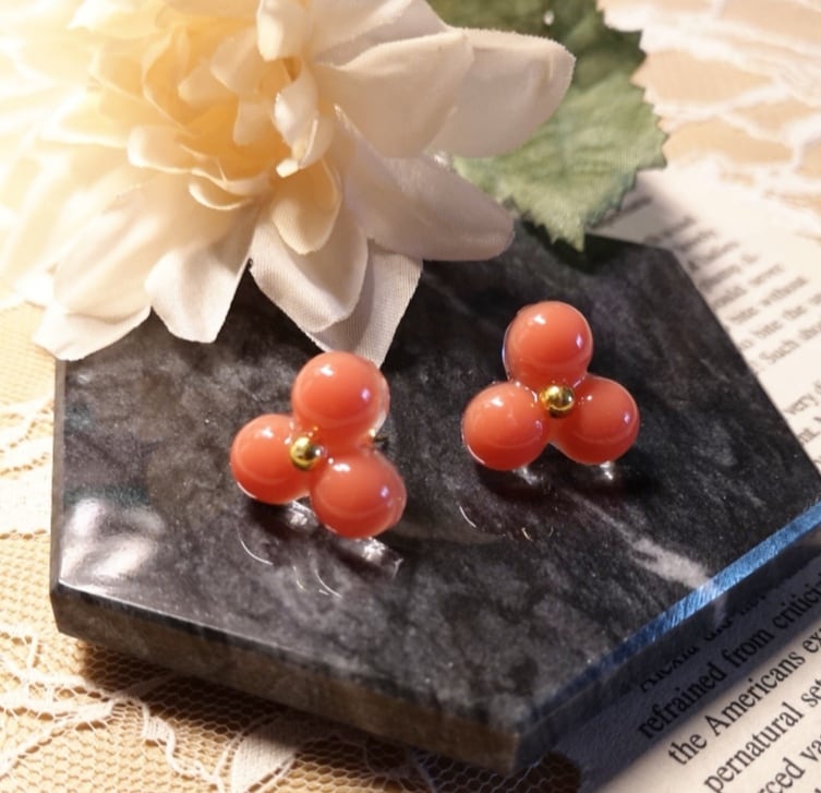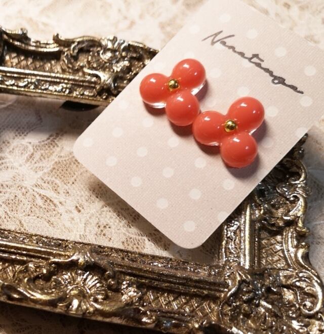 ぷっくり3枚花弁のピアス フラミンゴカラー