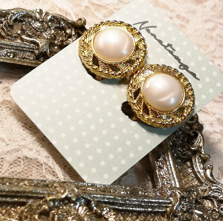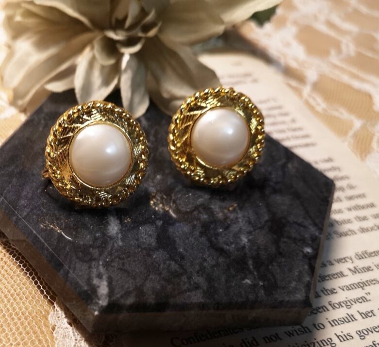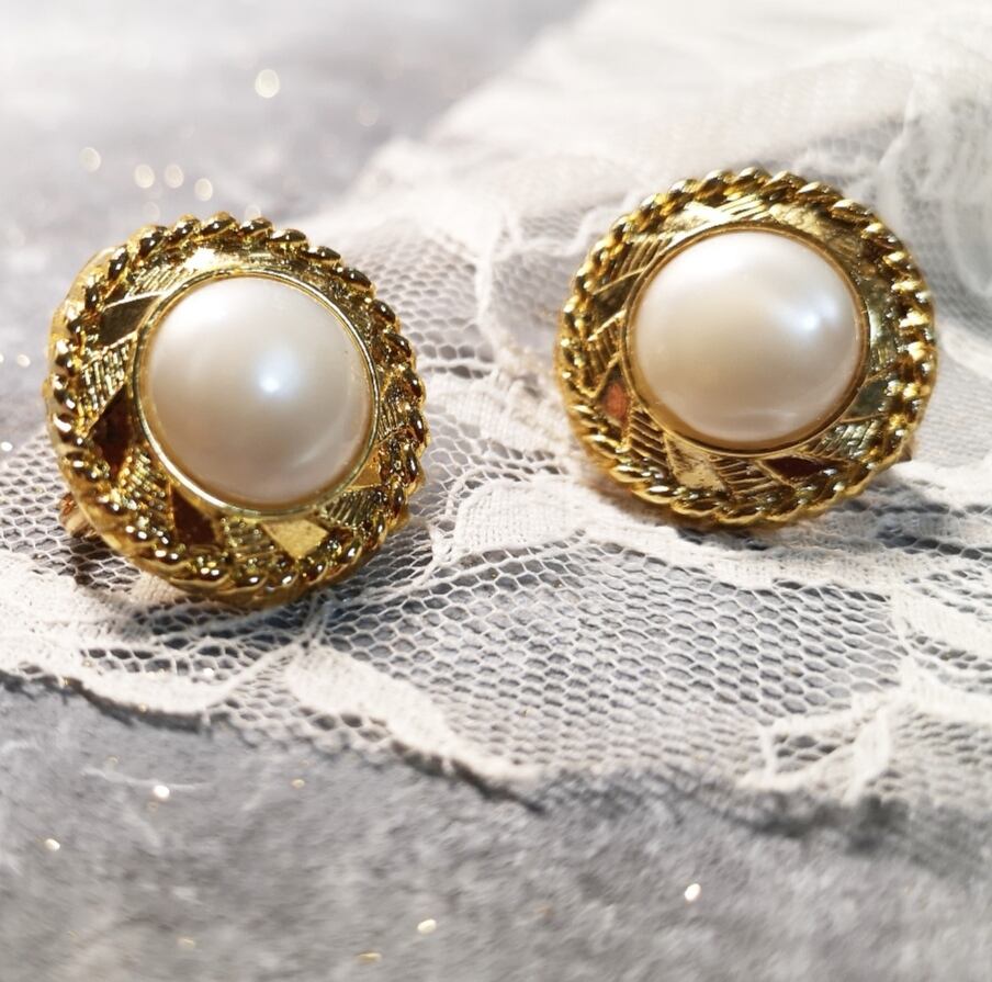 クラシカルなボタンのイヤリングです。金色と白の美しいコンビネーションが、日常のコーディネートに華やかさを添え、普段使いから特別なシーンまで幅広く活躍するアイテムとなっています!