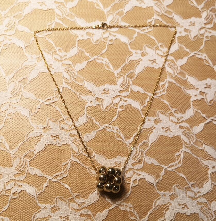華やかな存在感を放つネックレス、「ビーズボールのチェーンネックレス」です。金色の7mm玉で作成されたビーズボールが美しく輝き、シンプルながらも圧倒的な存在感を放つアイテムに仕上がっています!カジュアルなスタイルから特別なシーンまで、様々なコーディネートに華やかさを加えることでしょう。