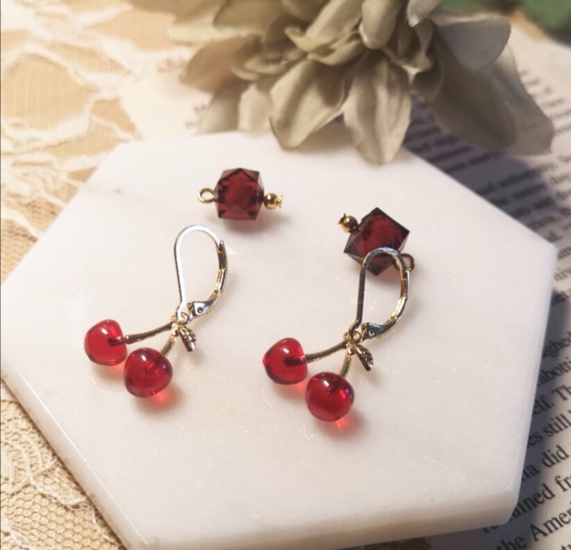 ・フレンチフックデザインにより、着脱が簡単で、さまざまなシーンでの使用が可能です!さくらんぼと赤い多面カットビーズの2WAY仕様で、その日の気分に合わせてスタイルを自由自在に楽しむことができます。