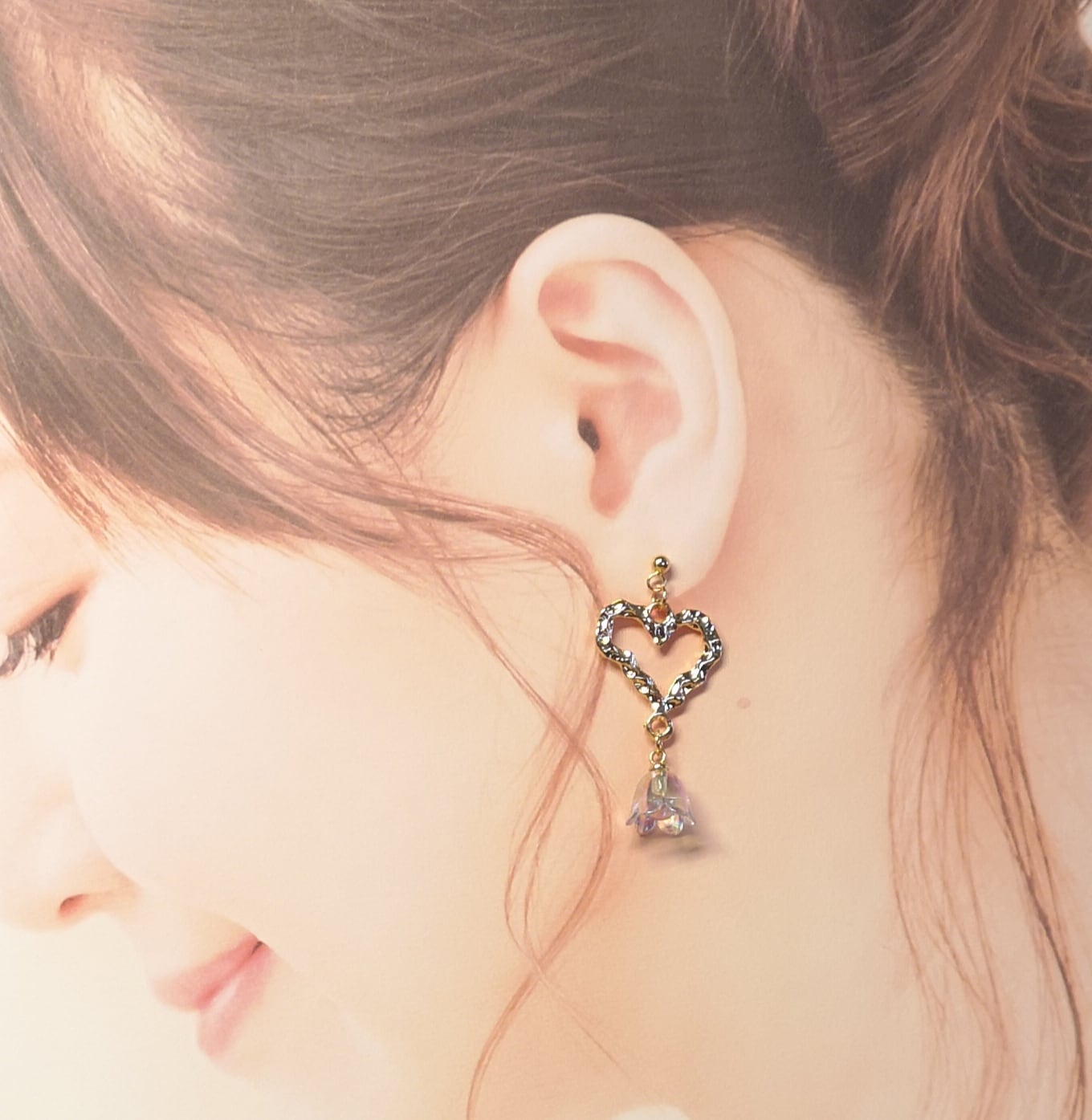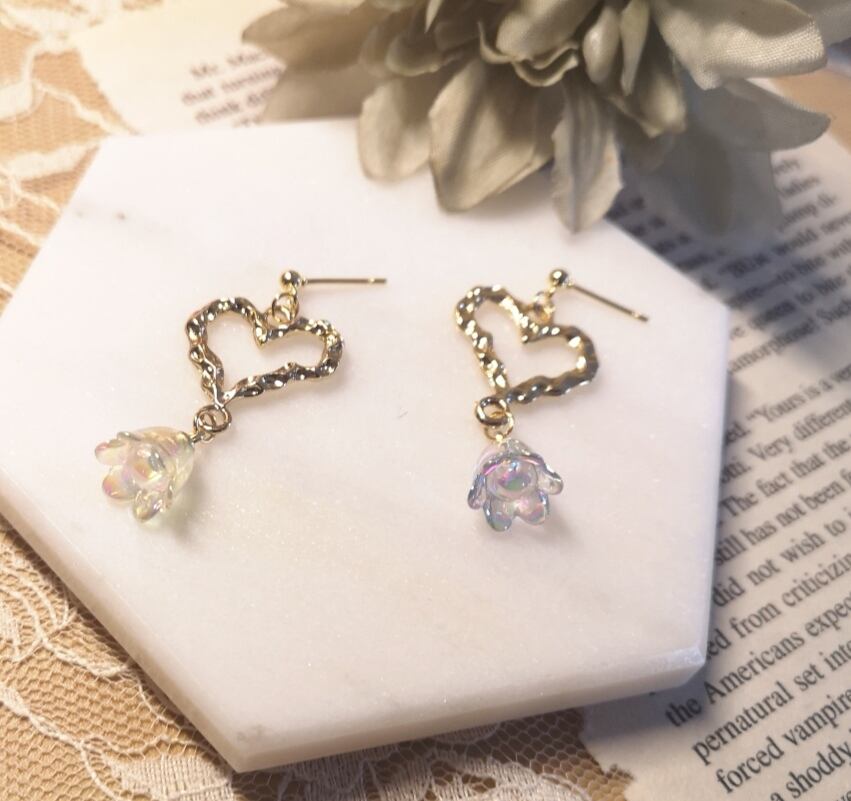 ハートとすずらんのピアス、イヤリング オーロラ
